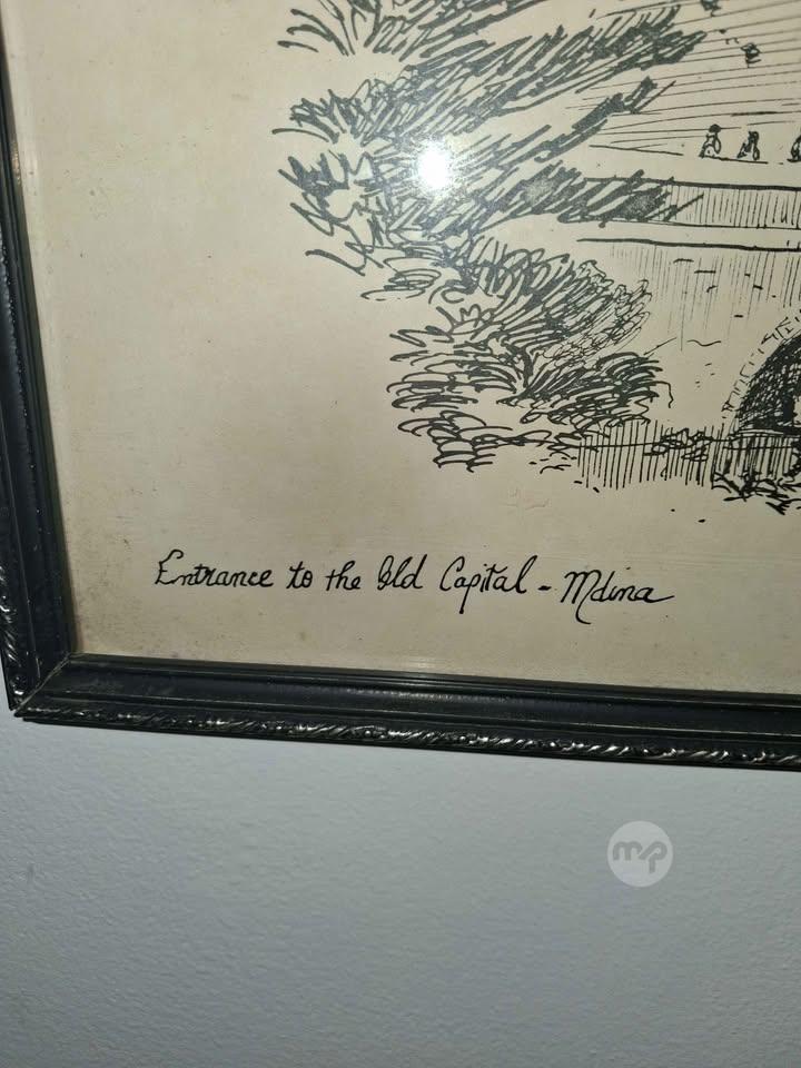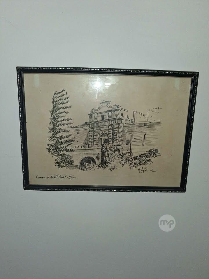 Vintage Maltese Ink Drawing - Entrance to Mdina (V.Camilleri)