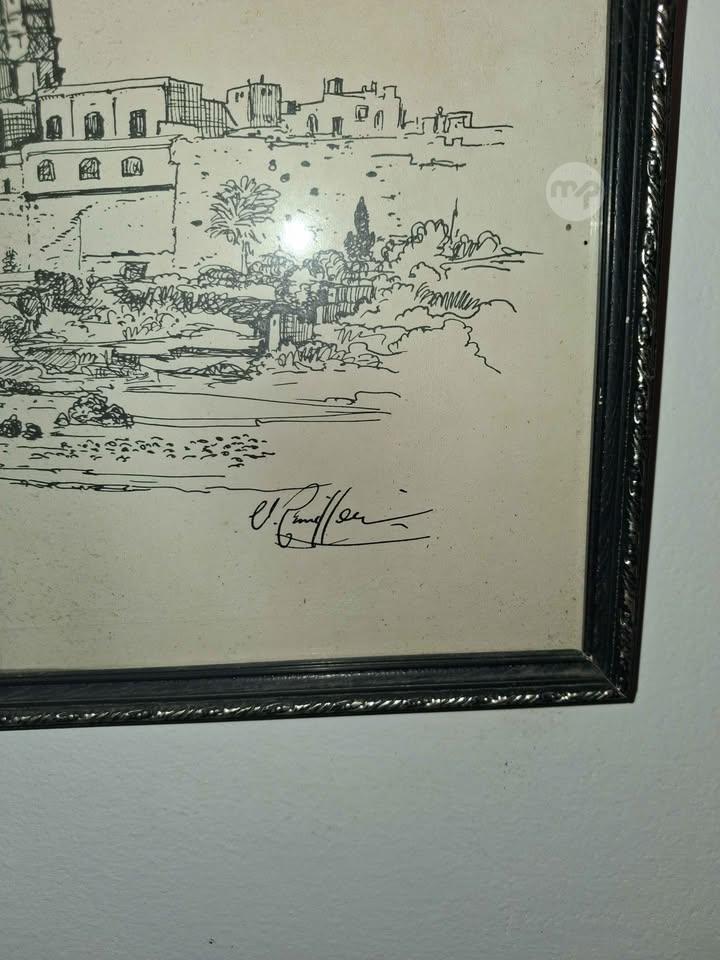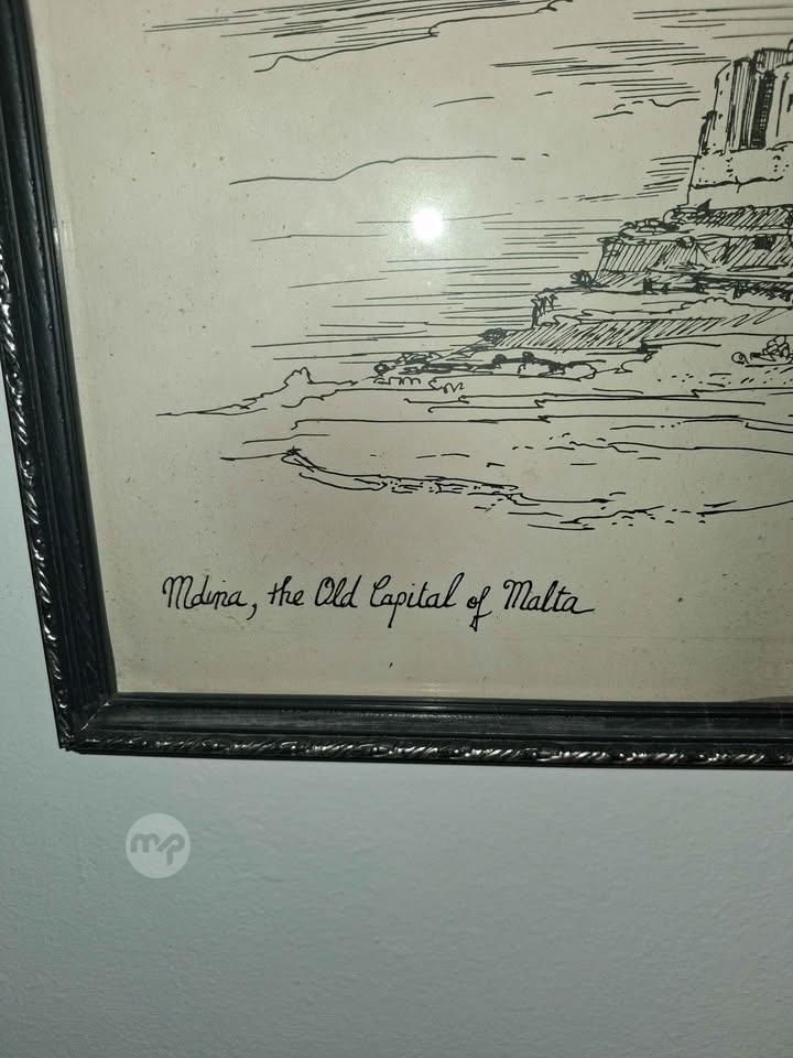 Vintage Maltese Ink Drawing - Mdina, Old Capital of Malta (V.Camilleri)