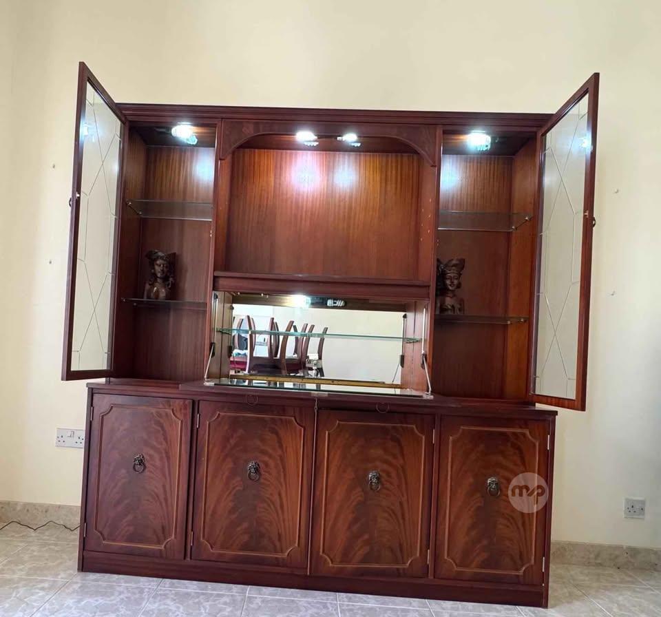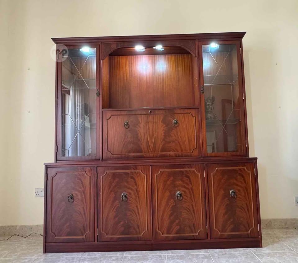 Beresford and Hicks (England) 1985 (Label present), high mid-range English furniture, mahogany. Heavy unit, with 7 cupboards.