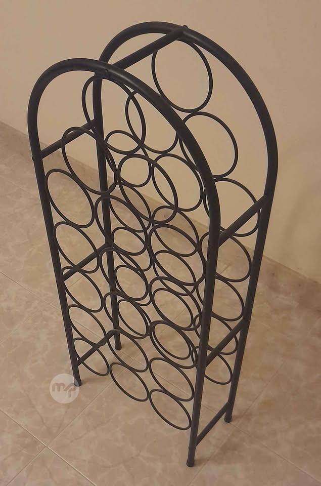 18 bottle metallic wine rack, in good condition. Lightweight rack.