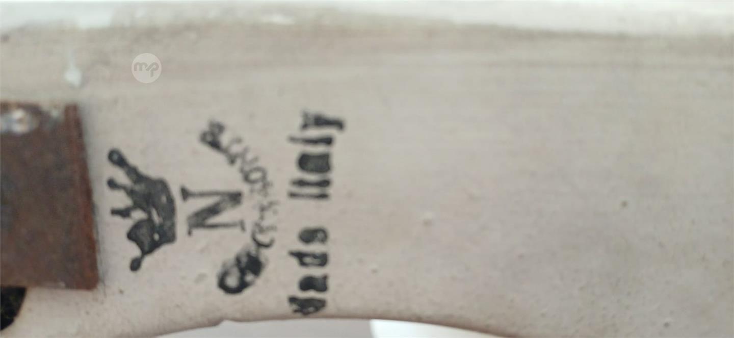 This mid-20th-century Capodimonte wall bracket is a classic example of Italian porcelain craftsmanship. Finished in a white glaze, it features hand-shaped and hand-painted roses and forget-me-nots, showcasing the detailed floral work that Neapolitan artisans are known for. The piece is marked with the authentic Crown over "N" symbol and stamped "MADE IN ITALY" on the back, confirming its origin and traditional production.