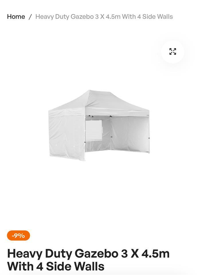 New Gazibo 4.5mtr x 3 mtr with 4 sides. White heavy duty