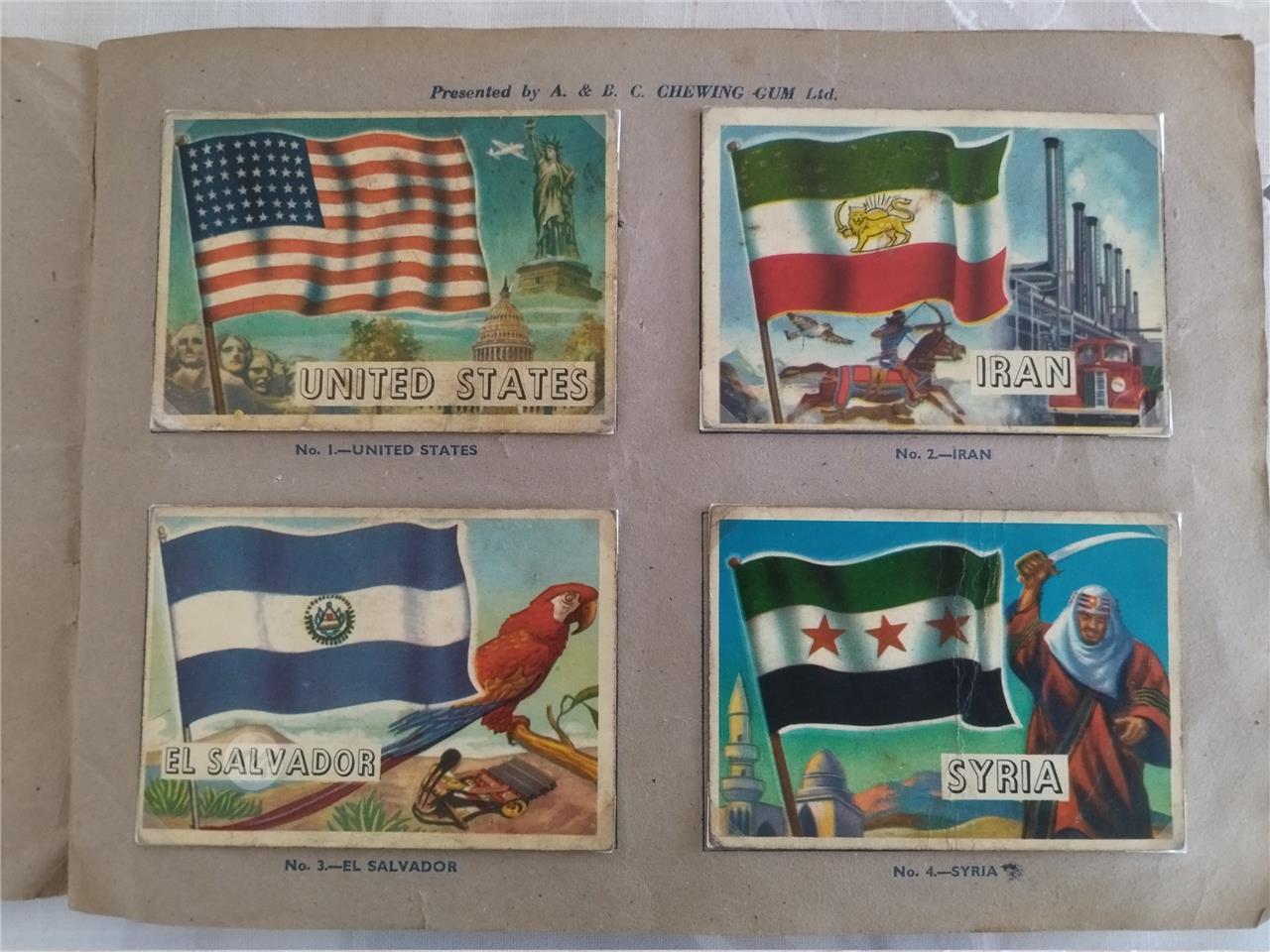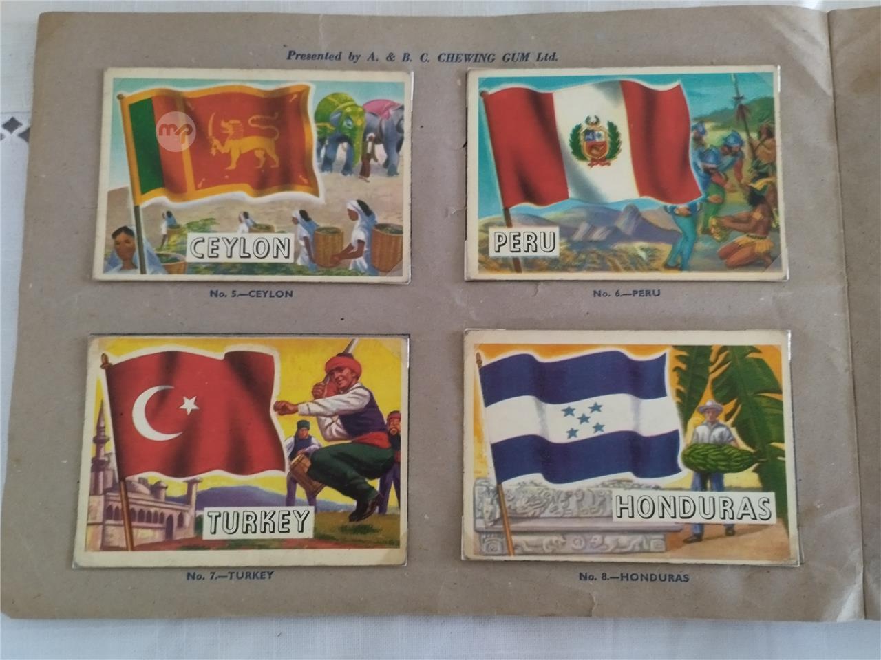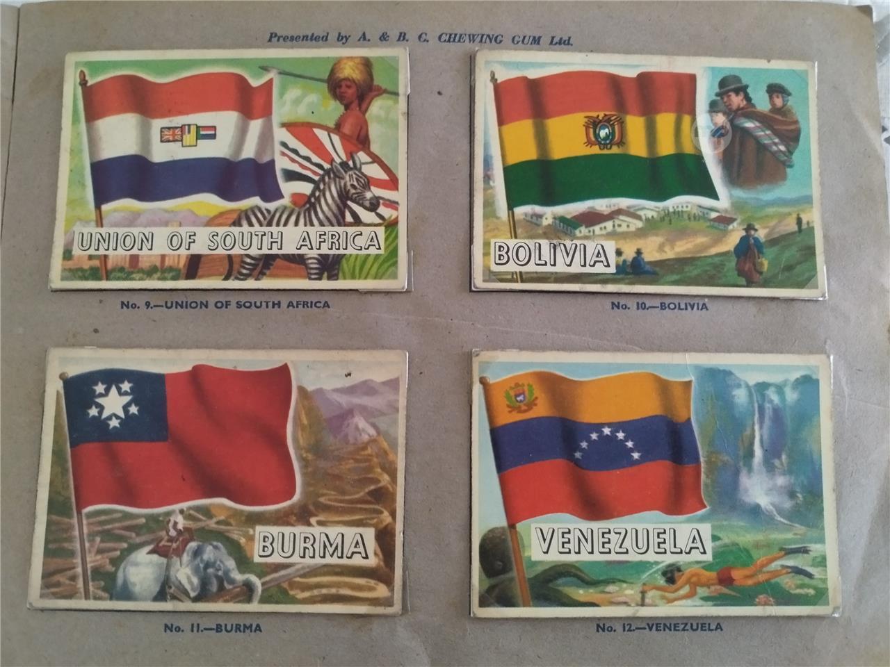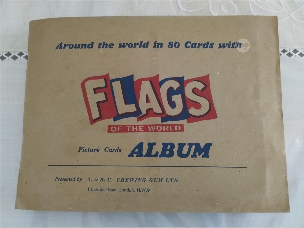 Complete set of 80 cards Flags of the World issued in 1959 by A&BC Gum Cards having a size of 95 x 66 mm in album ( not to be confused with the smaller 81 x 57 mm card set of 1963, which is much more common to find ).