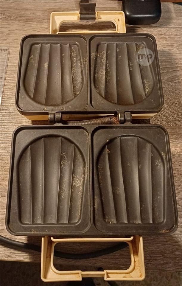 Made in Belgium. Classic retro Nova Model 216 sandwich maker in great working condition. Unlike modern toasters, this one has the sought-after "shell" plates that seal your toasties into a decorative scallop shape. Power: 600W — heats up really fast. Power-tested and working with a secure locking latch. Perfect for a vintage kitchen or making the ultimate Croque-Monsieur!