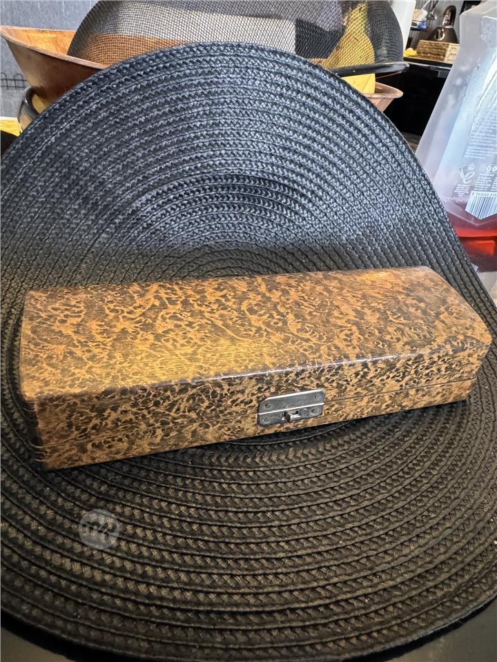 The original wooden case is intact and lined, with the Hohner branding clearly visible inside. The exterior shows wear and marks from age and storage, adding to its vintage character.