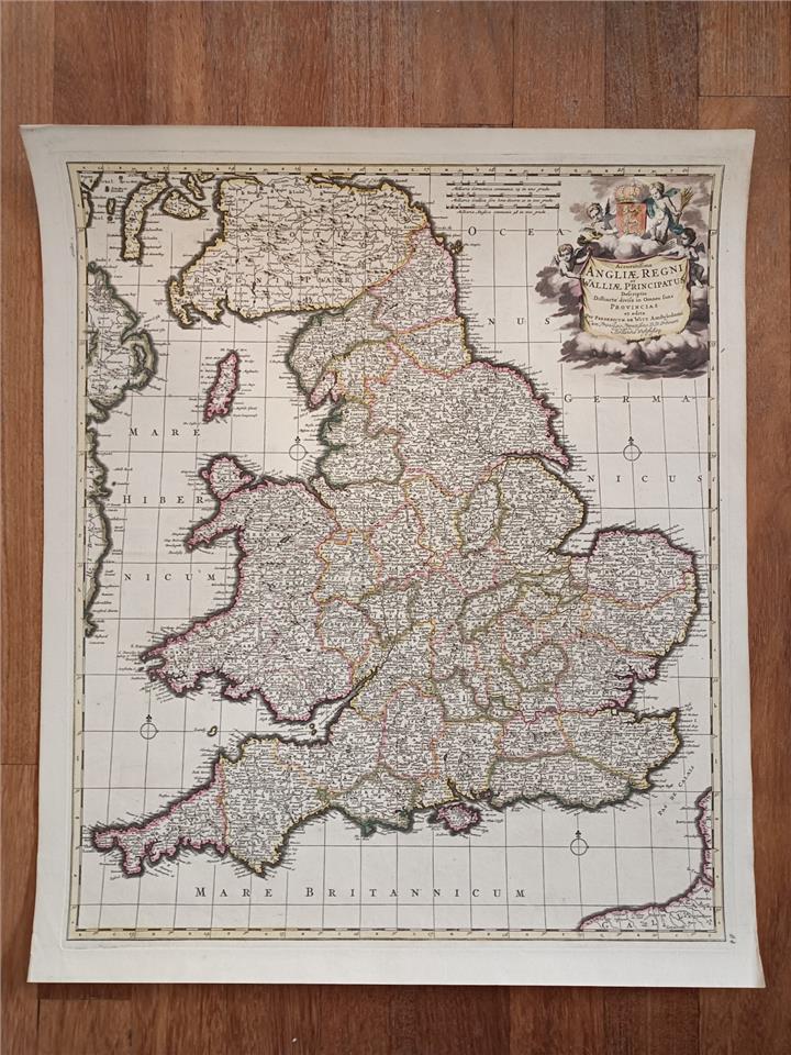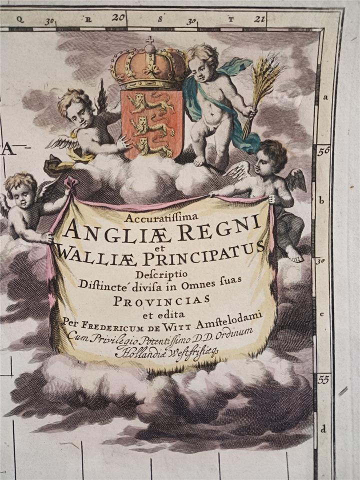 1709 Antique Map England & Wales – Frederik De Witt – Hand Coloured