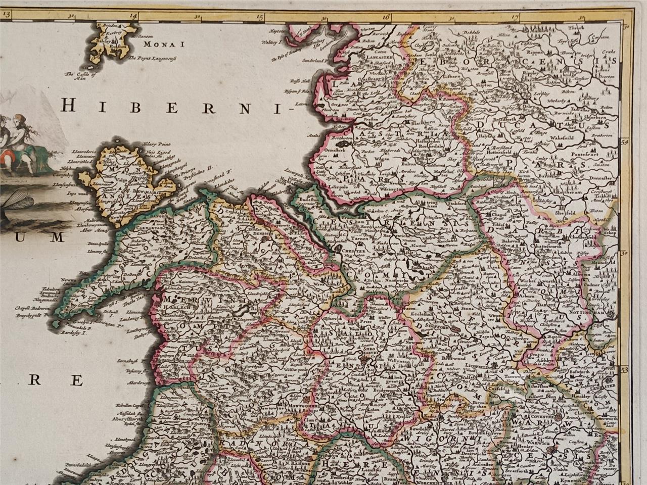 1709 Antique Map East England – Frederick De Wit– Hand Coloured
