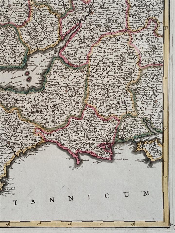 A fine early 18th-century English county map, highly decorative and ideal for framing or collection.