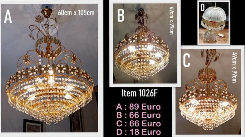 ( 1026F ) LARGE & SMALL STRASS CHANDELIERS & GLASS TABLE LAMP