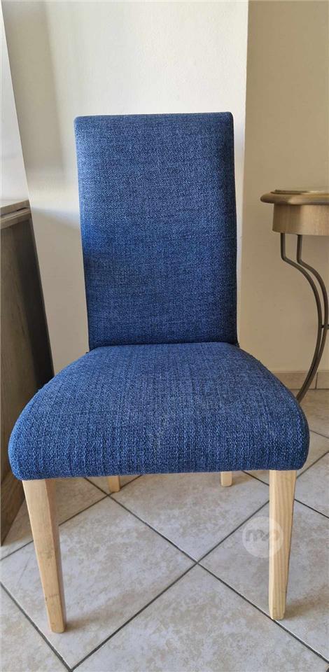 Blue Fabric Dining Chair with Wooden Legs – €10