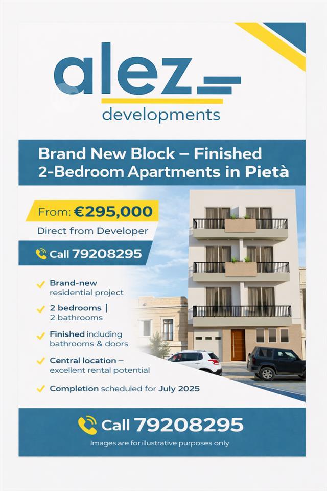 Brand New Block - Finished 2-Bedroom Apartments in Pietà
