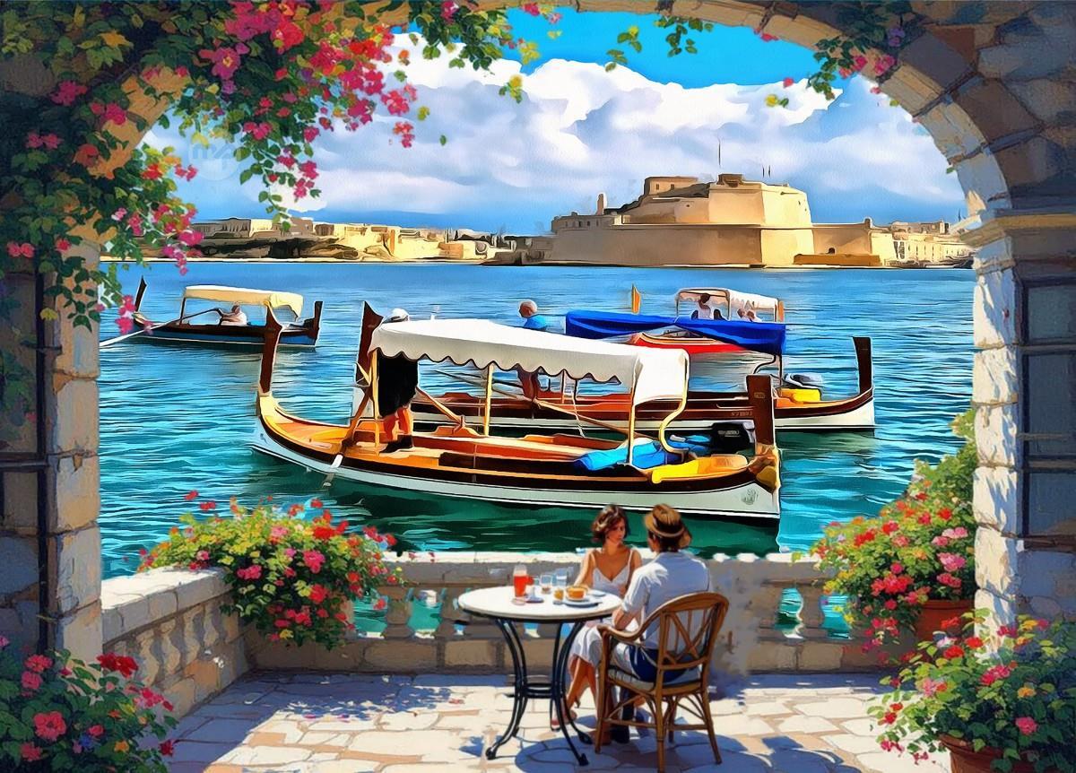 GRAND HARBOUR VIEW MALTA --- ORIGINAL HAND PAINTING OIL ON CANVAS 70X50