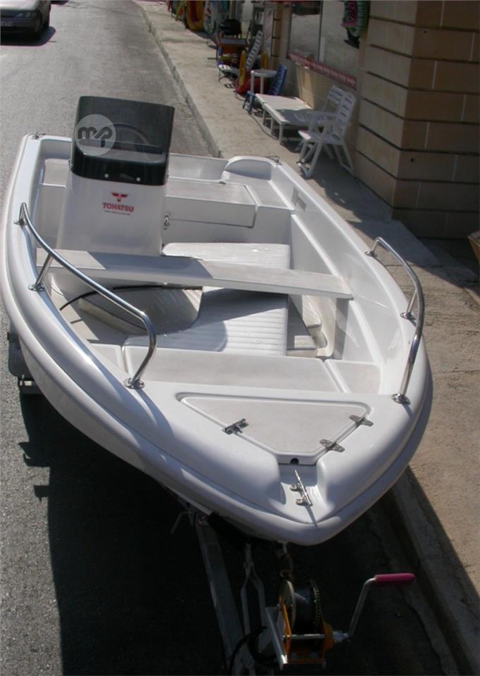 Marino Marea 405, open boat with v hull and double bottom. Very spacious ideal for fishing or for fun. Comes with a 25hp Mercury outboard with self starter. Includes a Garmin GPS/Fish finder and marine stereo, rod holders, anchor, ropes, fenders, canopy, navigation lights etc. All in good condition, never left at sea with no antifauling. call to view 99847460