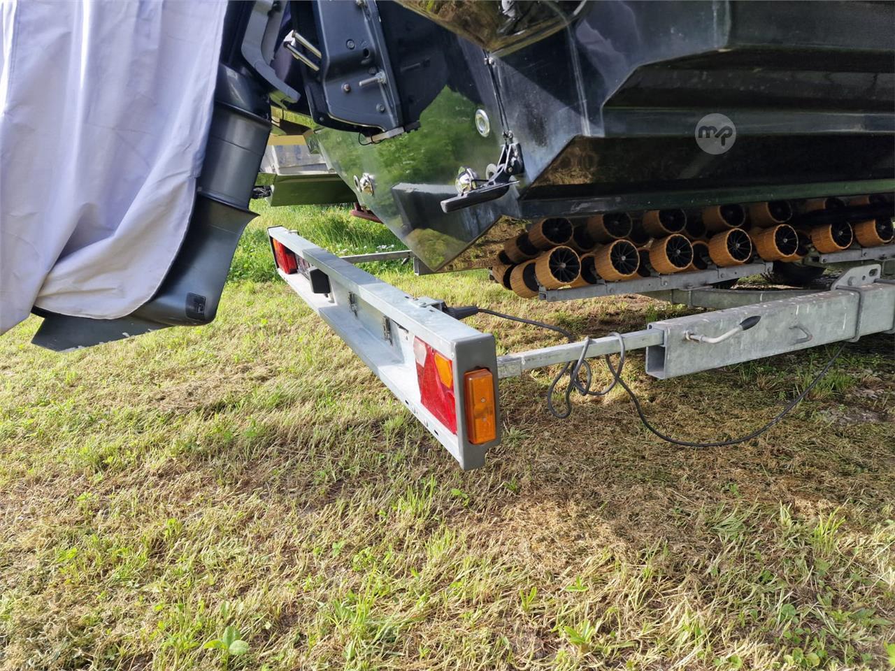 Trailer never used in the water and used for boat storage, complete with fully functional electrical system, braking system, winch, and spare wheel.