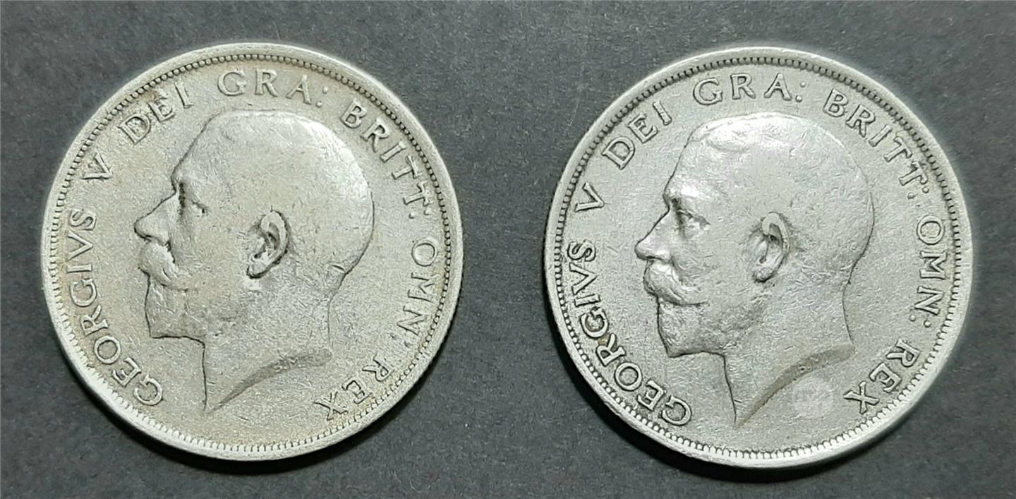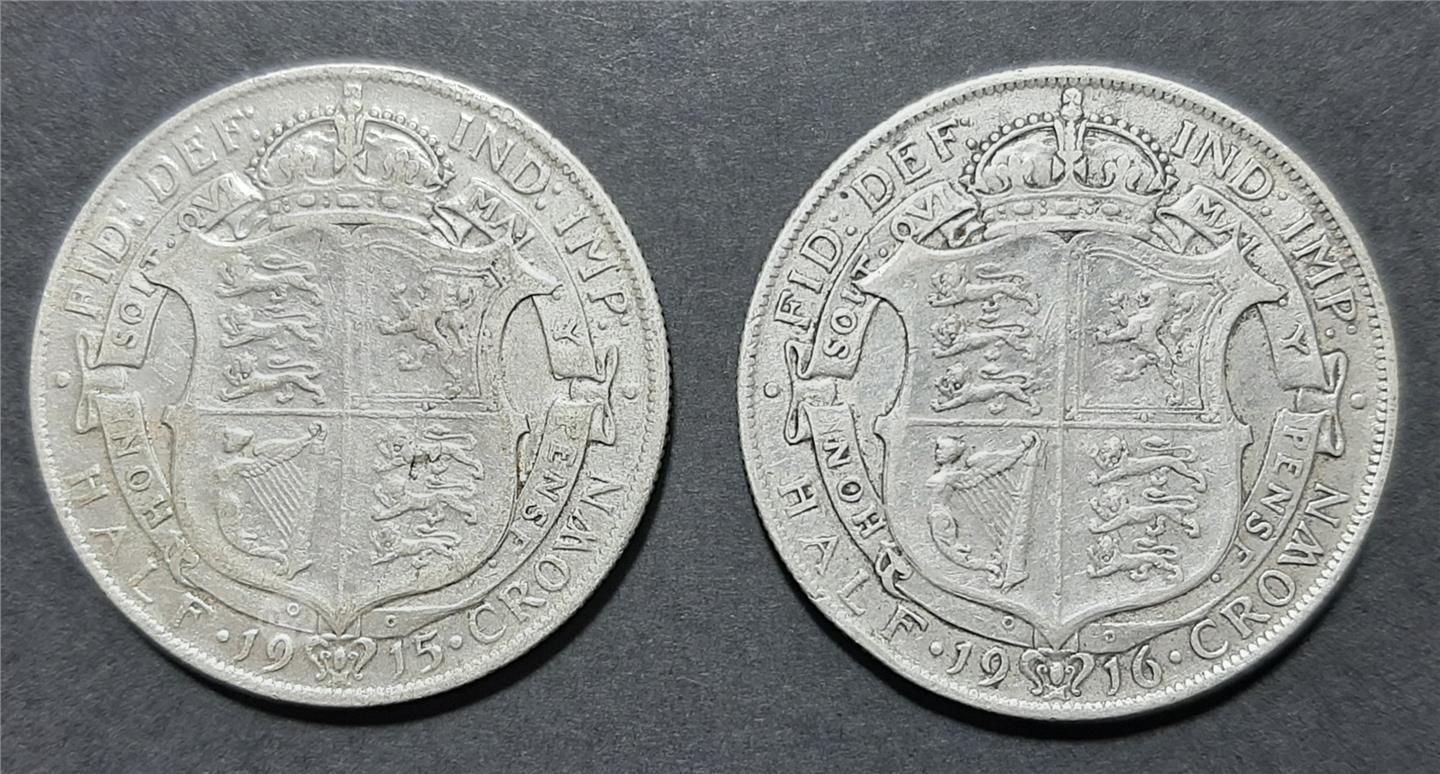 2 GEORGE V STERLING SILVER (.925) HALF CROWN COINS dated 1915 and 1916