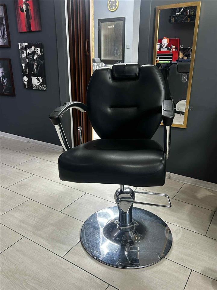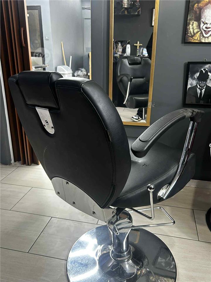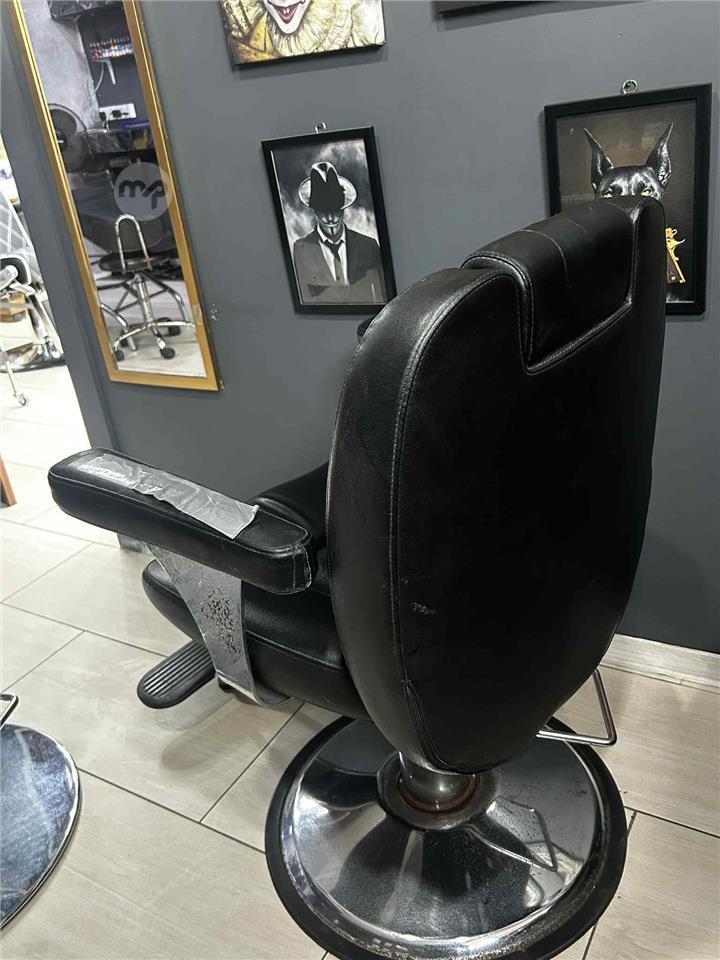 Selling two used barber chairs in good working condition. Both chairs function perfectly, providing a comfortable and reliable experience for clients. They do show signs of use, including some minor scratches, and one chair has slightly damaged armrests (as shown in the photos).