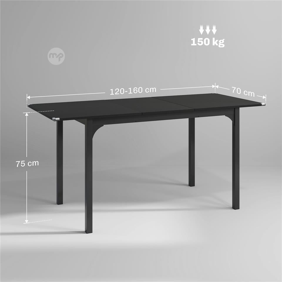 Extendable Table 4-6 Seater Expandable 120-160cm with Steel Legs, Black
