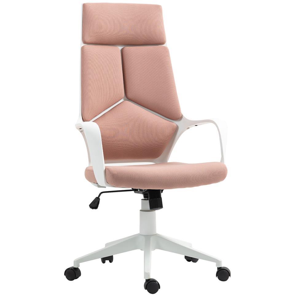Fabric Office Chair with Rocking, Adjustable Height and Swivel Seat, 63x63x117-127 cm, Pink