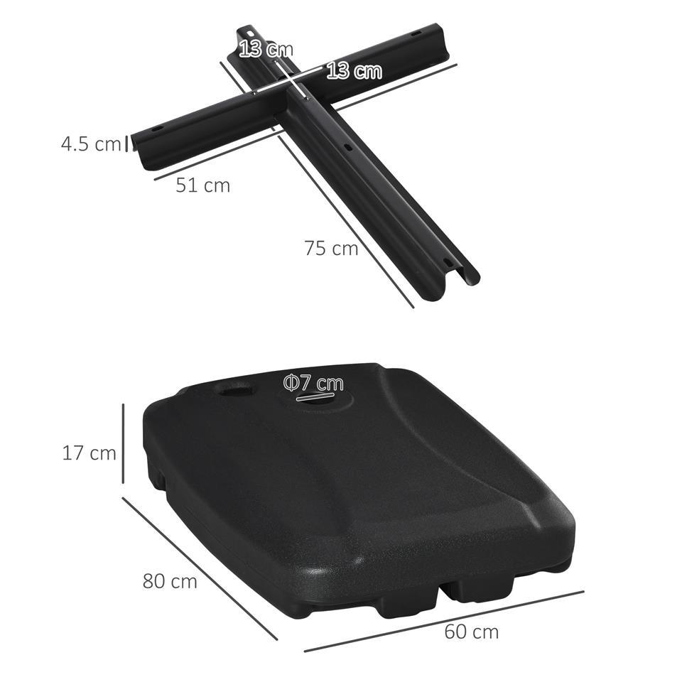 Fillable Arm Umbrella Base up to 75kg with T-Base Included, 80x60x17cm, Black
