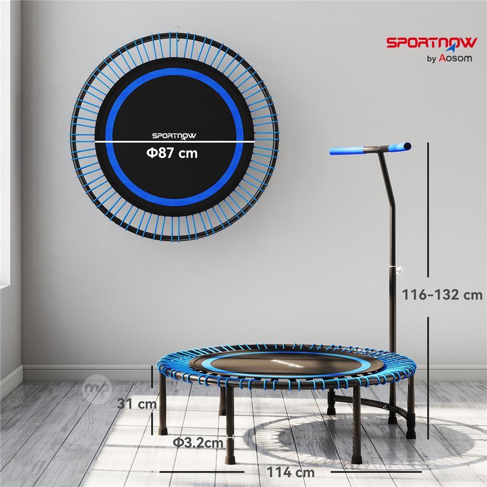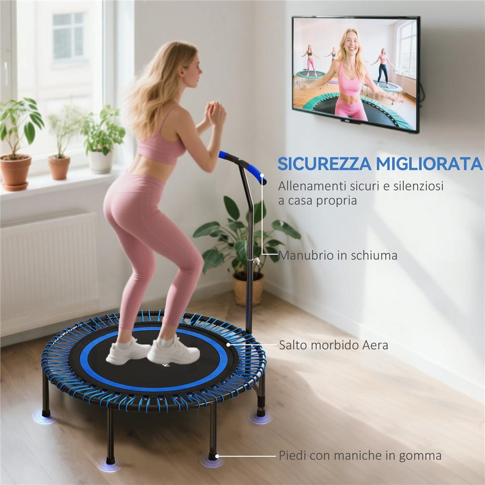 Fitness Trampoline Ø145 cm with 5-Position Adjustable Handlebar, 36 Bungee Springs and 150 kg Capacity, Blue