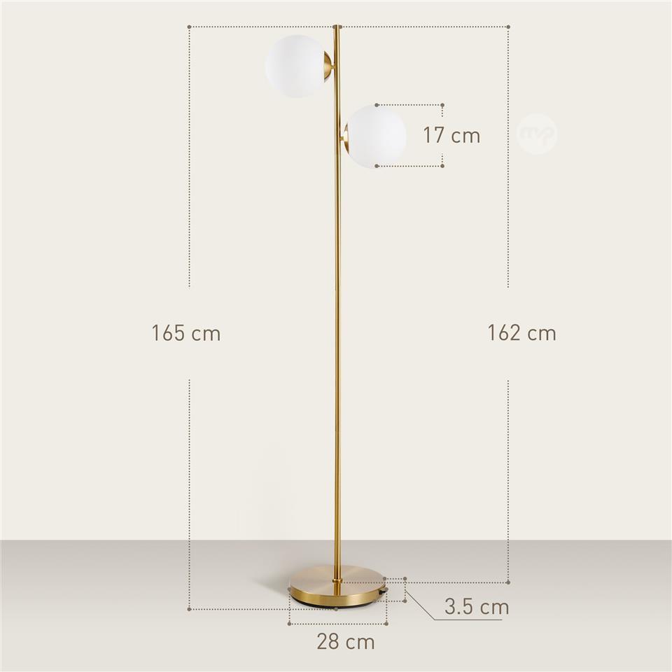 Floor Lamp with 2 Lights and Sphere Lampshades, Foot Switch and E27 Socket, Ø28x165 cm, Gold