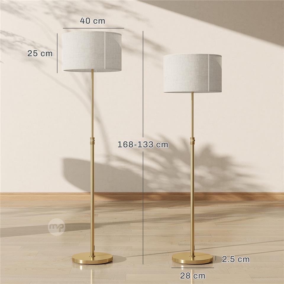 Floor Lamp with Remote Control and Adjustable Brightness 3000K-6000K, Fabric Lampshade, Gold
