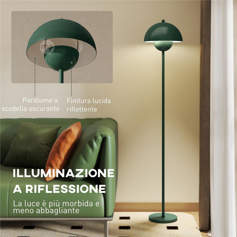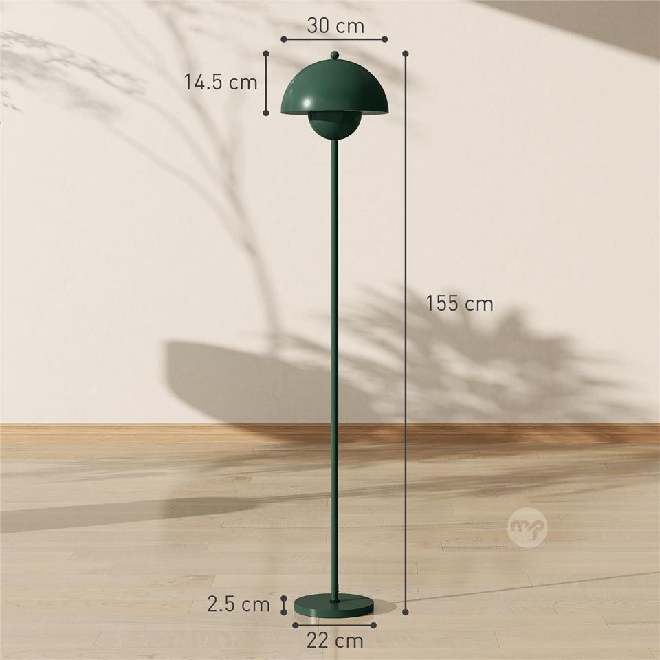 Floor Lamp with Semicircular Shade and Foot Switch, Steel, Ø30x155 cm, Green