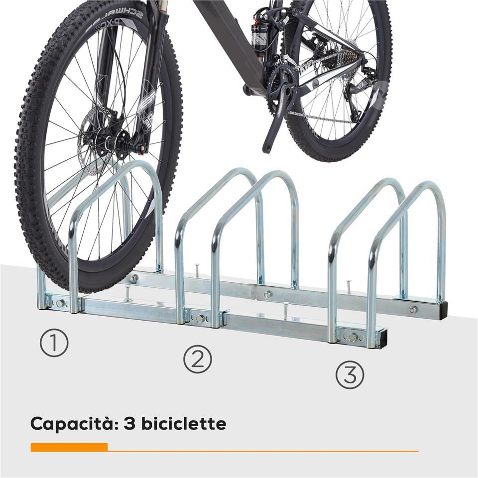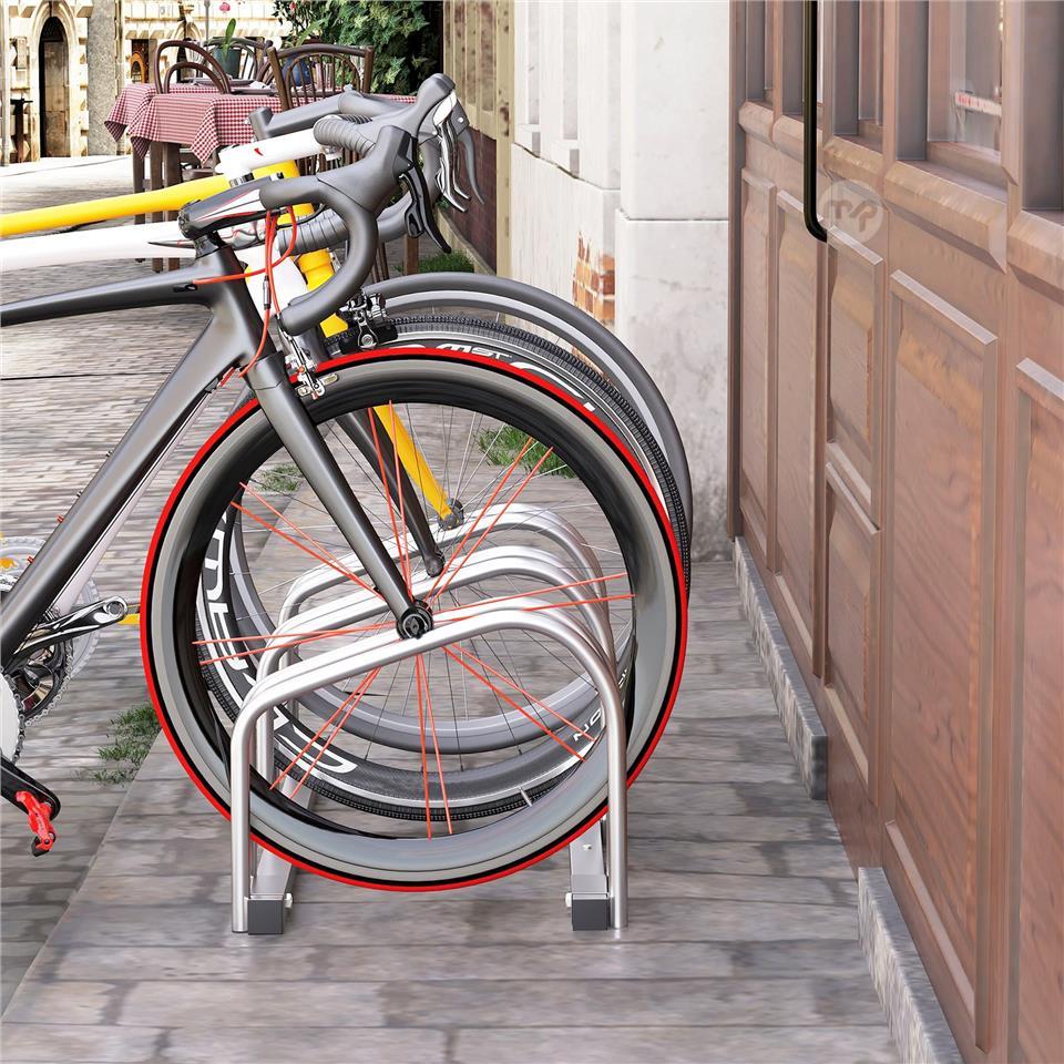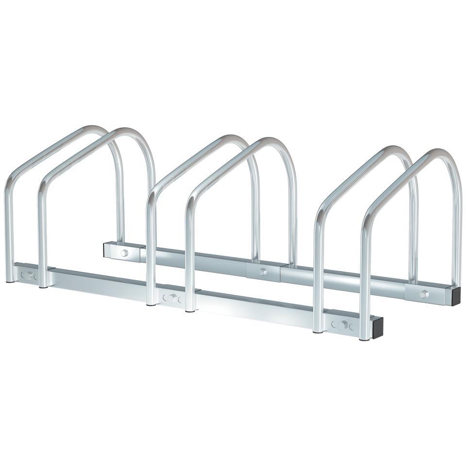 Floor or Wall Mounted Bike Rack, Steel Bike Storage for 3 Bikes, Wheels up to 55 mm, 70.5 x 33 x 27 cm, Silver