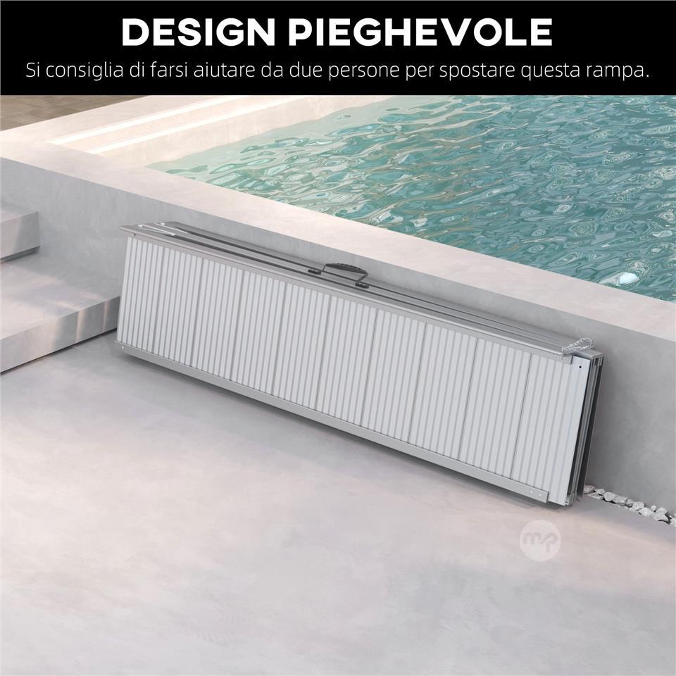 Foldable and Non-Slip Aluminum Wheelchair and Scooter Ramp for the Disabled, 305x73.5x5 cm, Silver