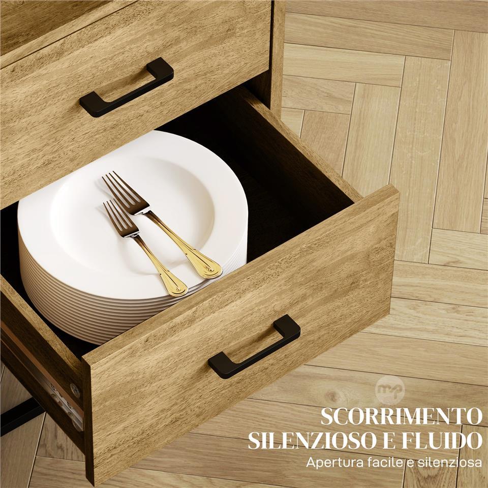 Modern Sideboard with 2 Drawers, Adjustable Cabinet and Open Shelf, in Wood and Steel, 80x40x78 cm, Brown