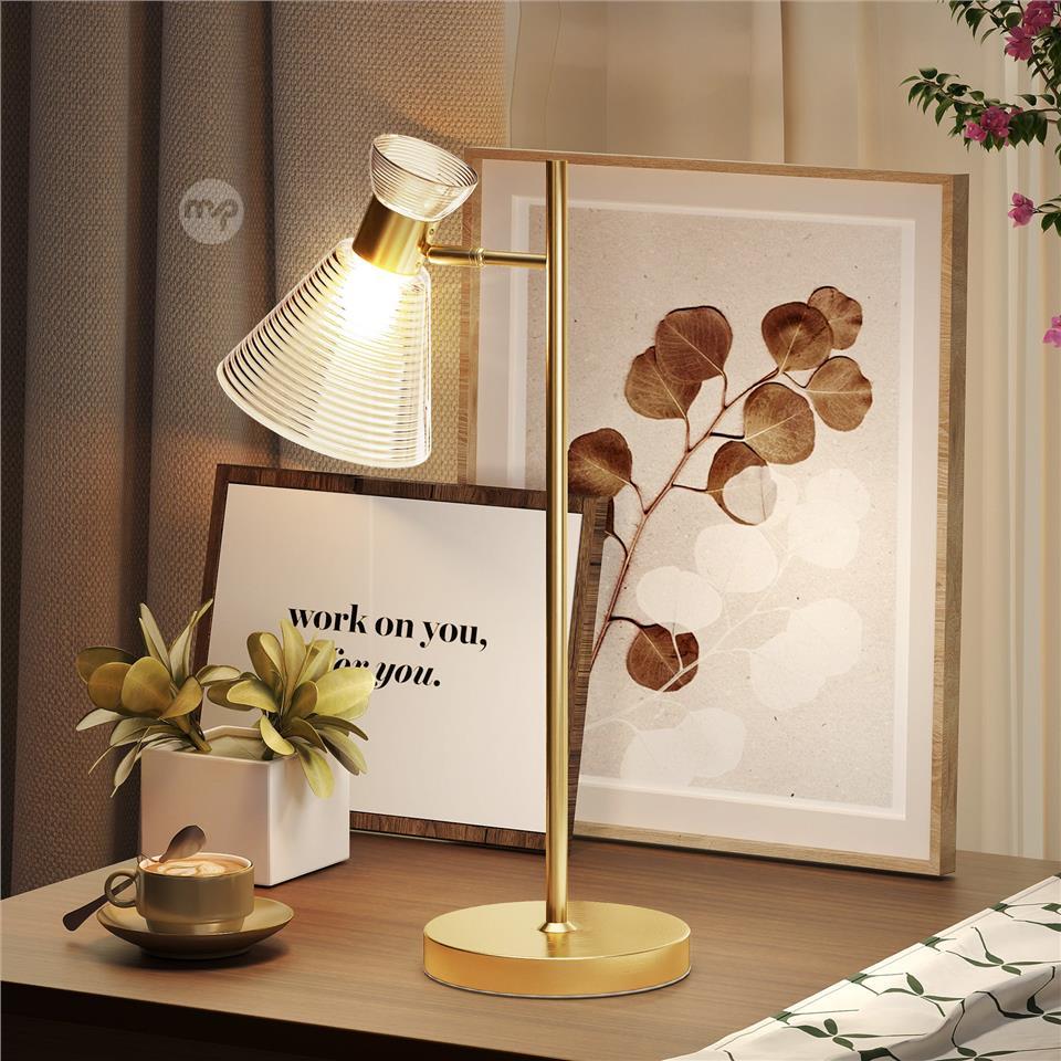 Modern Table Lamp with Adjustable Amber and Satin Glass Lampshade, E27 Socket, Gold