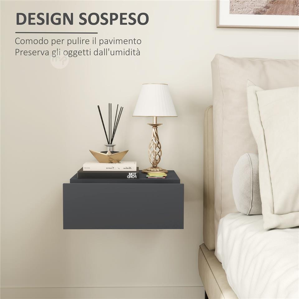 Modern Wall Mounted Bedside Table with Drawer, Wooden, 40x30x15 cm, Black