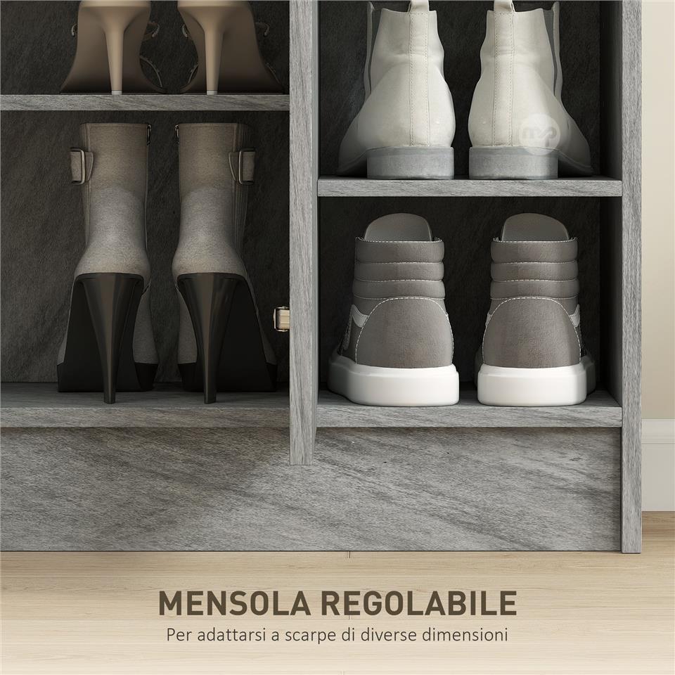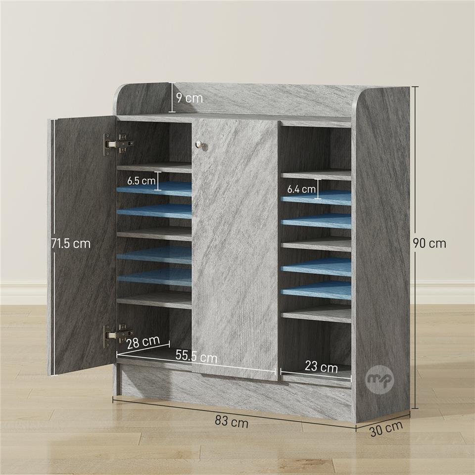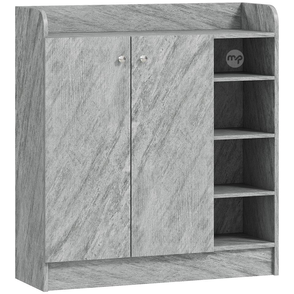 Modern Wooden Shoe Rack with 4 Open Shelves and 12-Pair Storage, 83x30x90 cm, Cement Grey