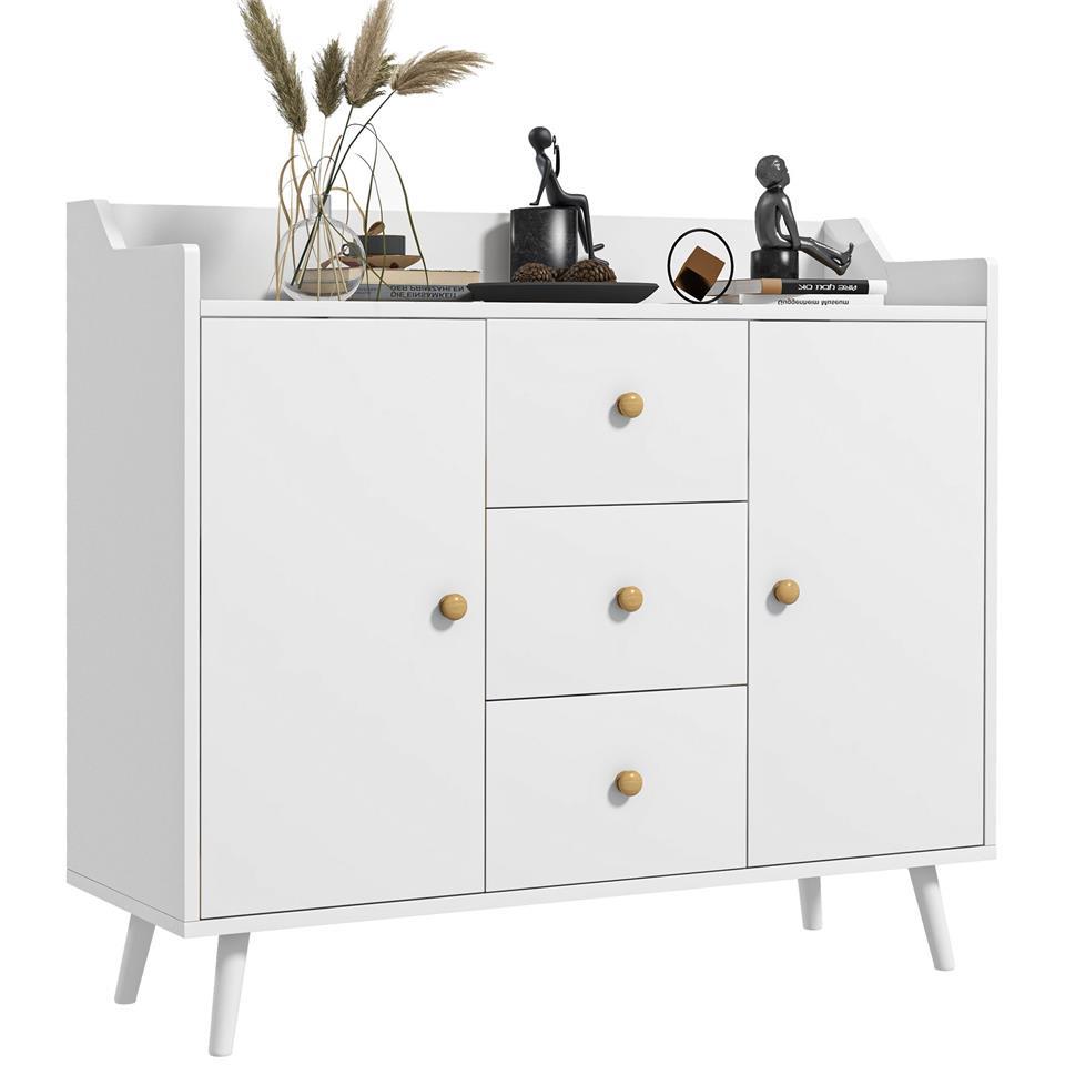 Modern Wooden Sideboard with 3 Drawers and 2 Cabinets on 2 Levels, 90x32x80 cm, White
