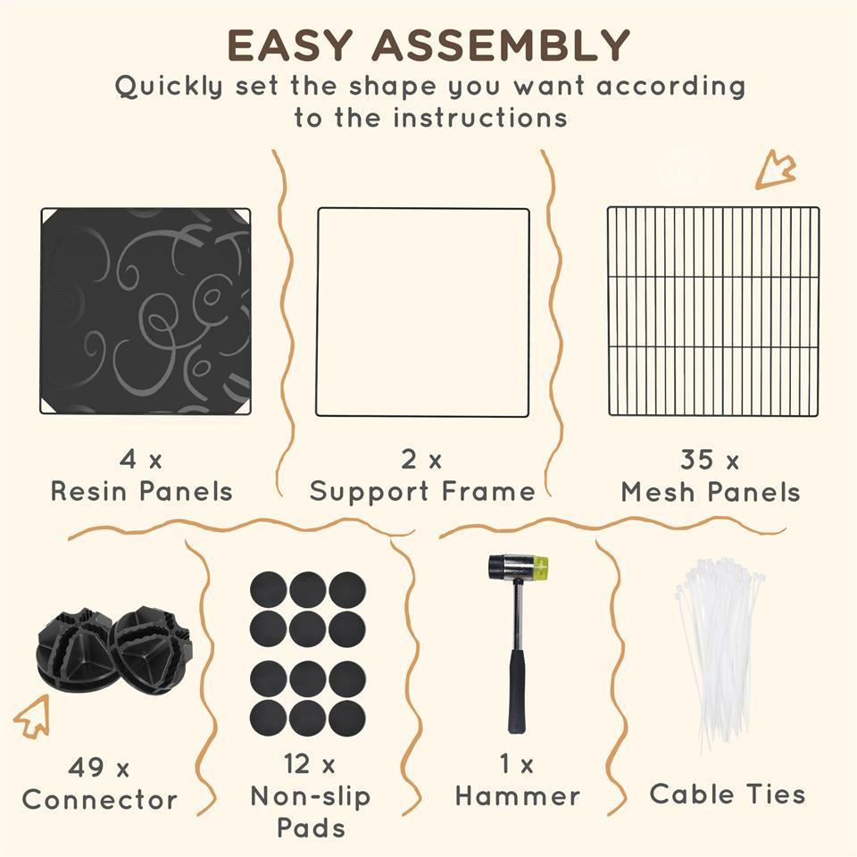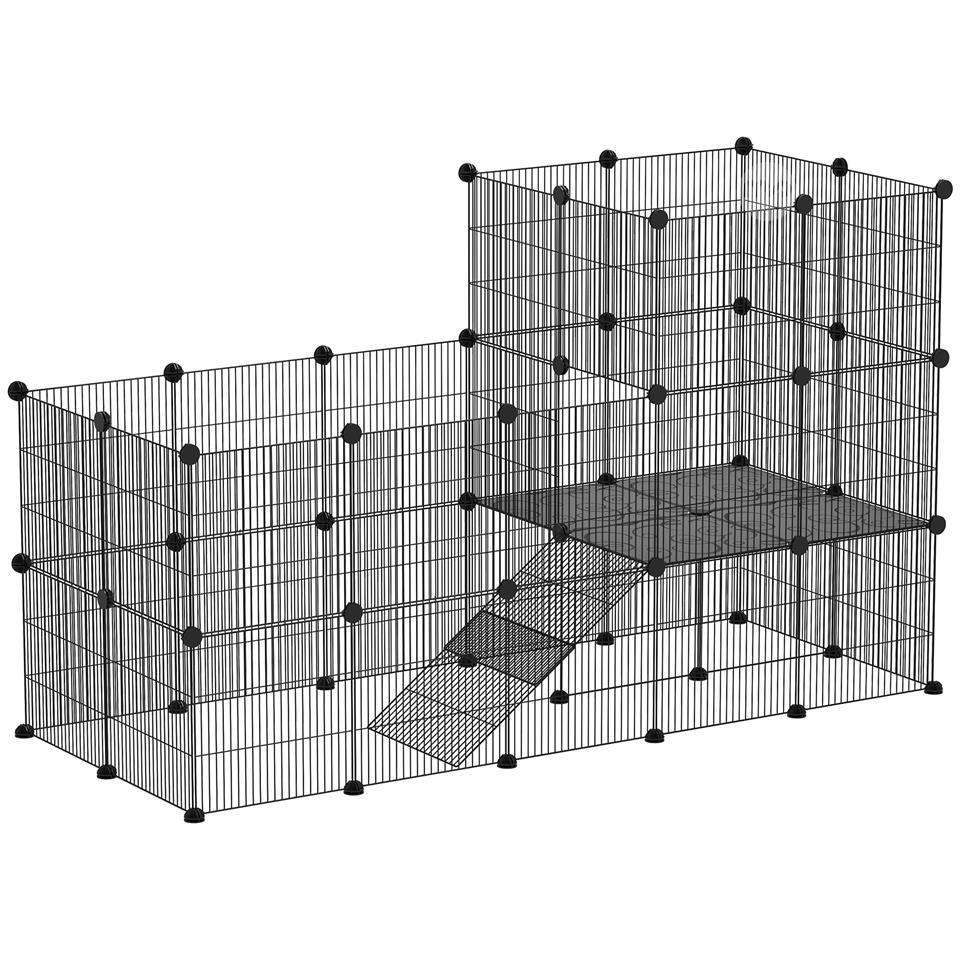 Modular and Multilevel Pet Run with 39 Panels, Steel and PP, 140x70x105 cm, Black