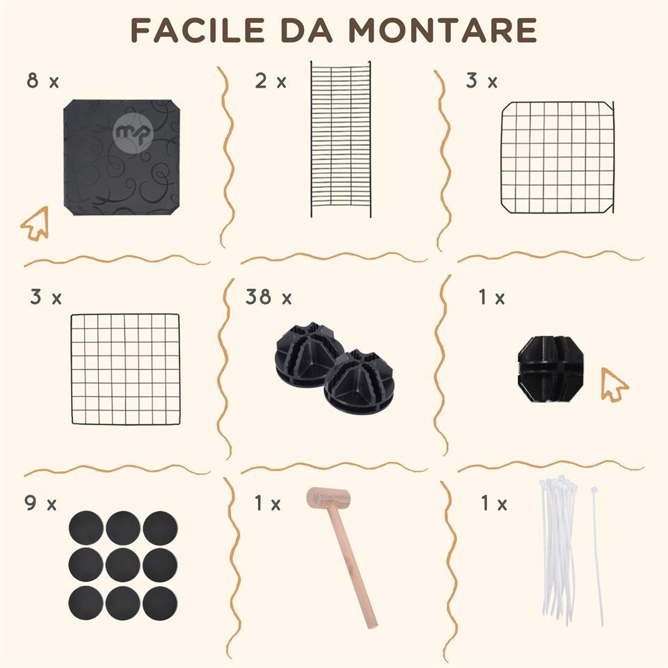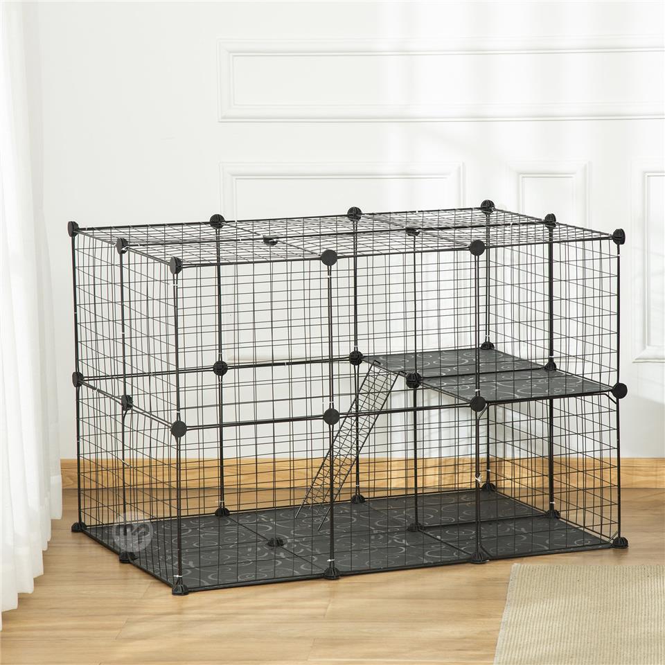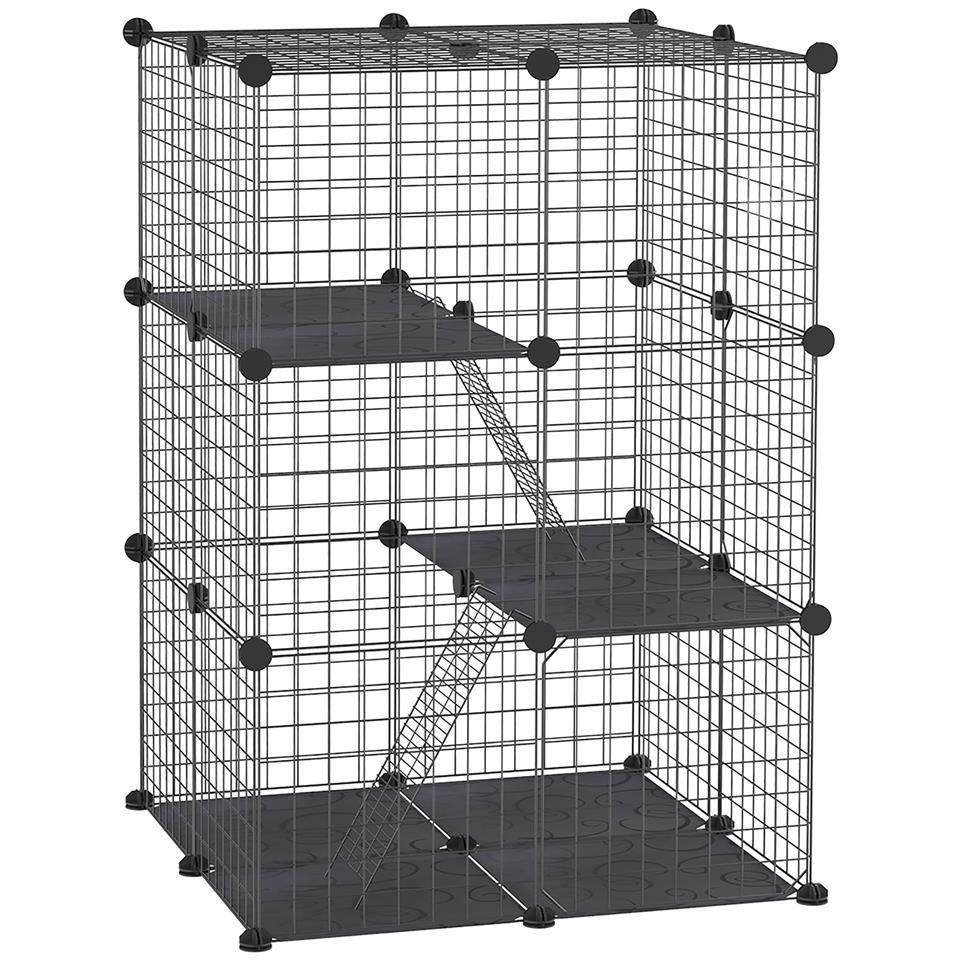 Modular Rabbit and Guinea Pig Cage with 3 Doors and Steel Wire, Black