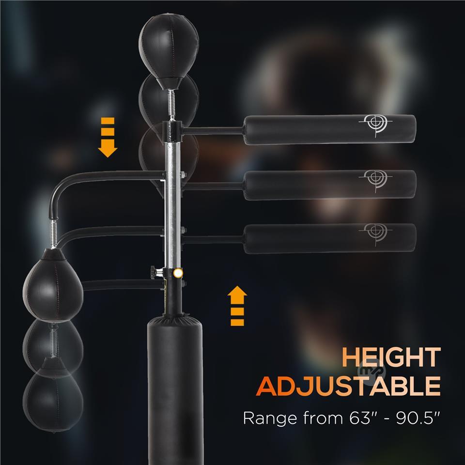 3 in 1 Free Standing Punching Bag with 2 Speedballs, Rotating Bar and Punching Bag, Height Adjustable from 160-230cm, Black