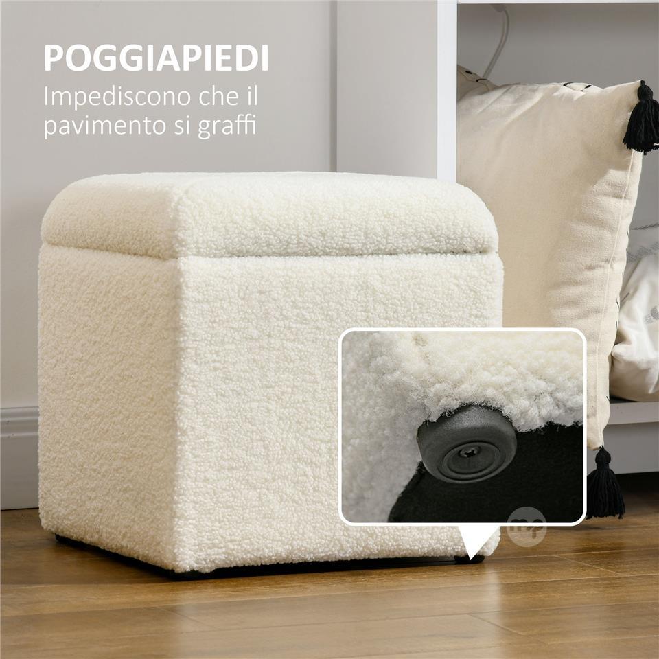 Soft Teddy Fabric Padded Storage Pouf for Living Room and Bedroom, 39x39x39cm, Cream