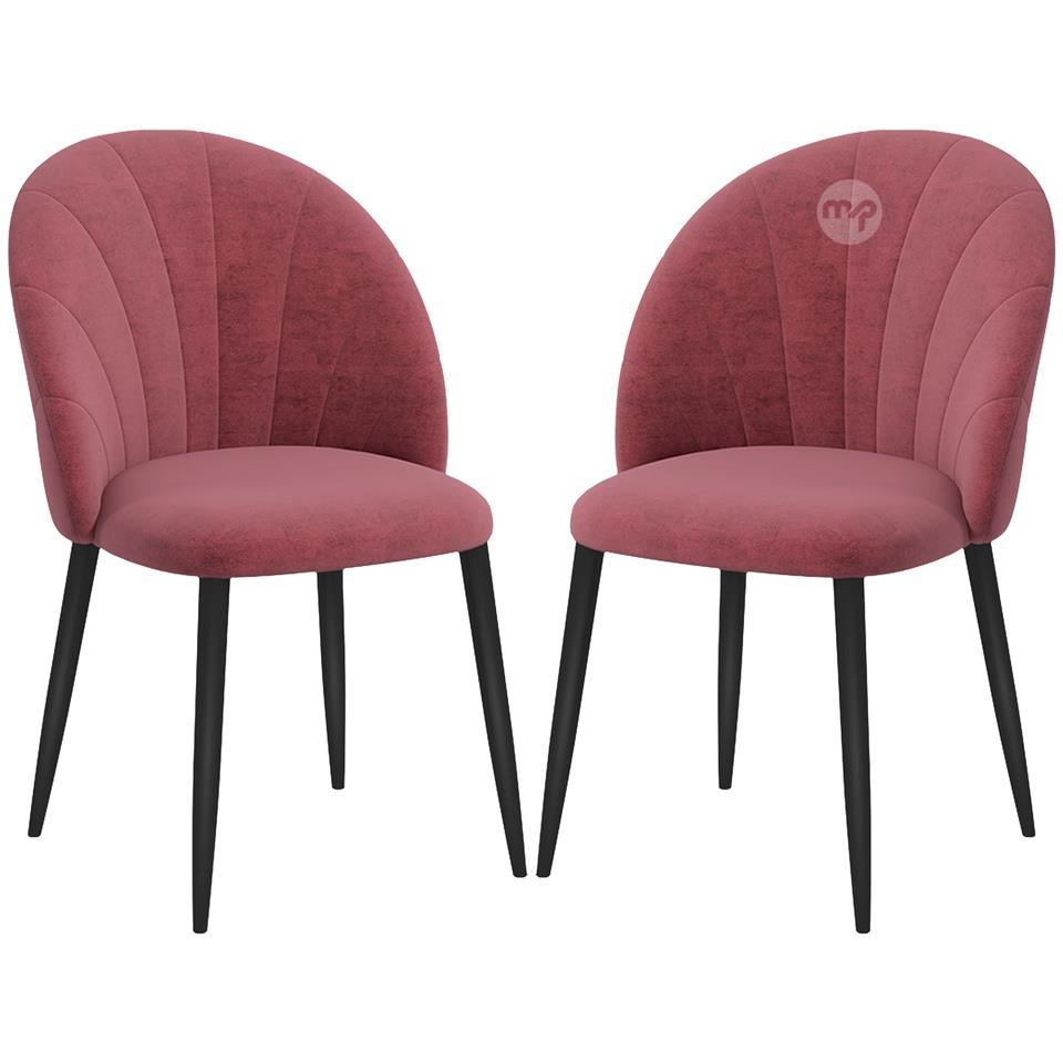 Set of 2 Nordic stye Velvet Dining Chairs with Metal Legs, Red