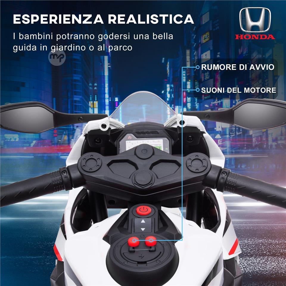 Honda Licensed Electric Motorcycle for Kids, 6V Rechargeable Battery, 3km/h Speed, White