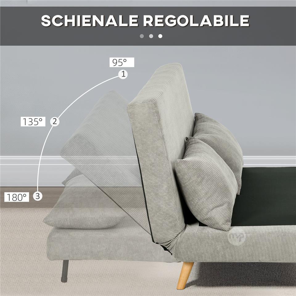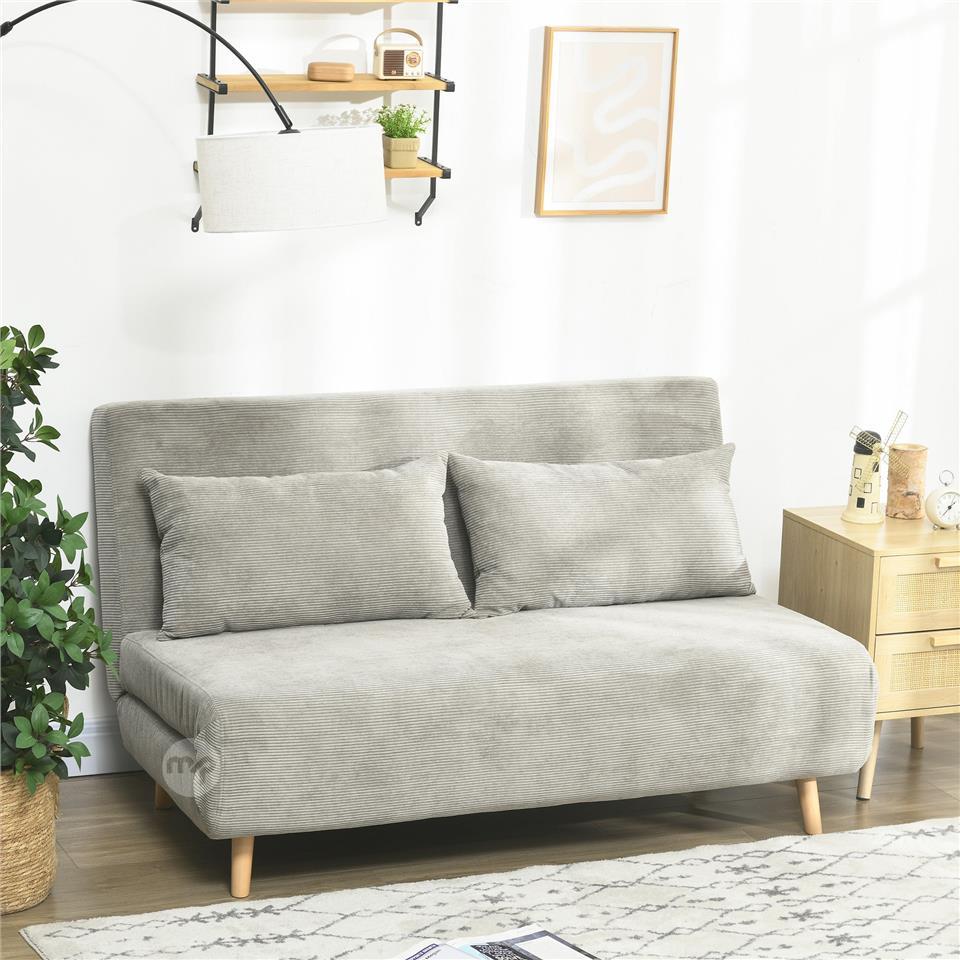 Double Sofa Bed with Adjustable Backrest and 2 Cushions, in Linen Effect Fabric Grey