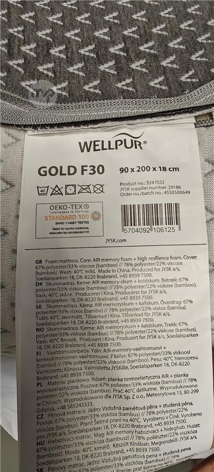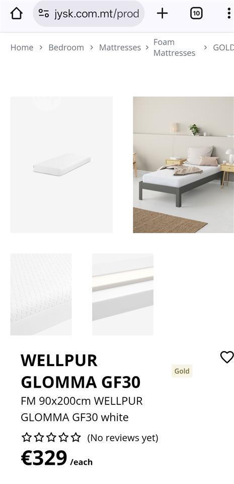 Wellpur Gold F30 Foam mattress, 90x200x18cm from Jysk. Hardly ever used as it was in the spare bedroom. Always covered with a mattress protector. Pick up Sliema, no delivery.
