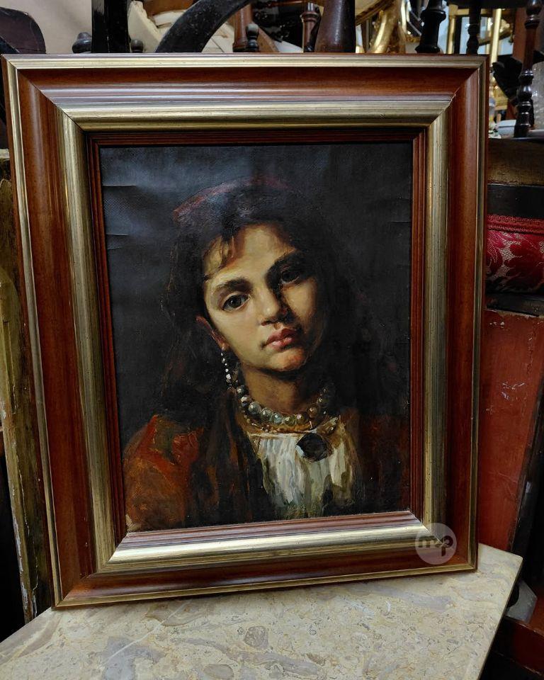 Oil on canvas Framed painting Showing a young woman Abakumov NV Kherlaov