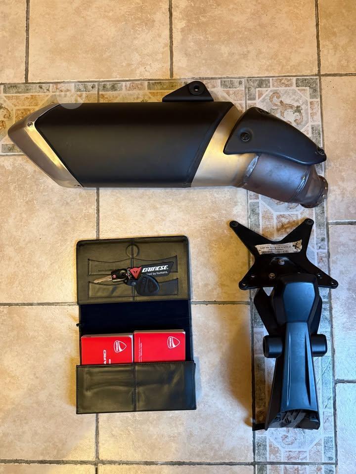 EVOTECH Performance radiators guard. ARROW exhaust with db killer, but the original ducati exhaust and original number plate holder are included. Ducati tool kit, manual/documentation and a one key.