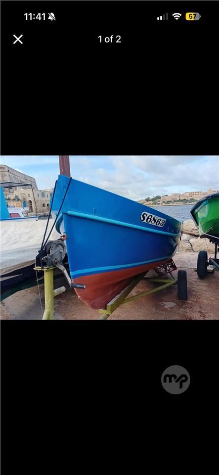 Fregatina fija 12.5ft tiehu inboard jew outboard bil karru u registrata.Kundizzjoni tajba hafna.
