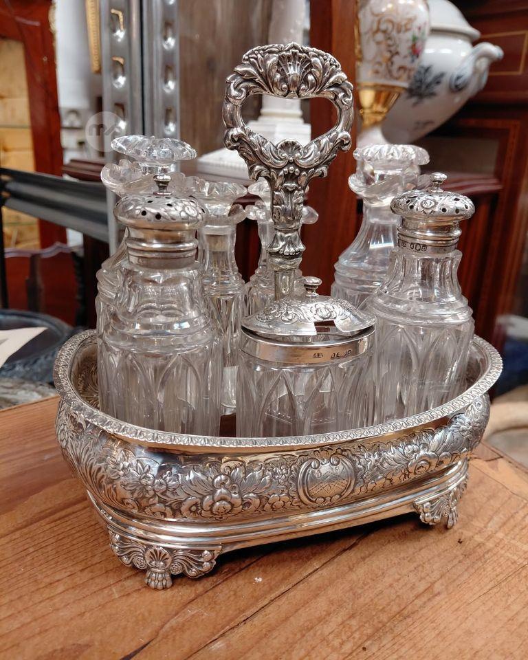 A RARE, IN PERFECT CONDITION Antique Victorian English Silver cruet set Cut gla