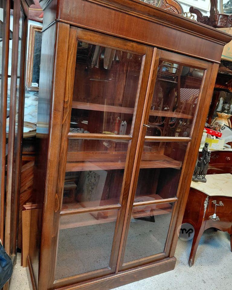 An old beech wood Bookcase, 'LIBRERIJA' Two doors, 4 shelves Solid wood Bookc