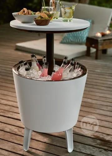 Bought from Lidl. Table has a built-in ice bucket and a double-wall construction that keeps drinks cold. Table is weatherproof and can be used outside. It has a height-adjustable tabletop, hence can also be used as a side table or a bistro proof. Hardly used.