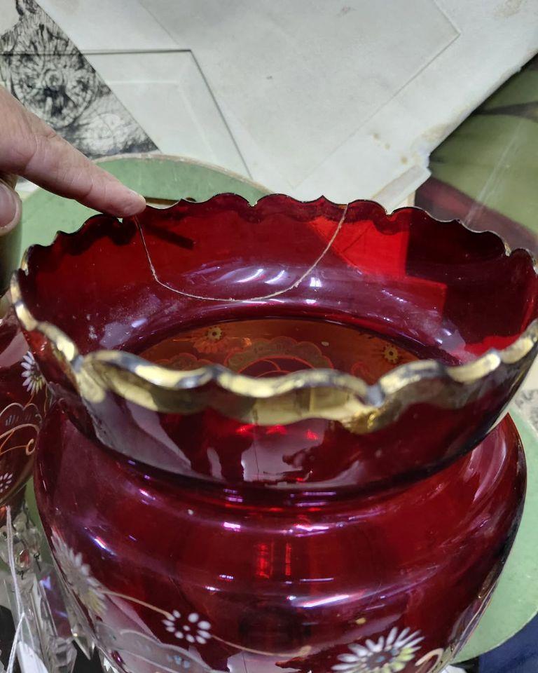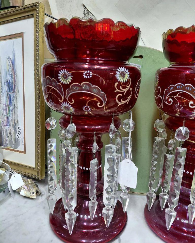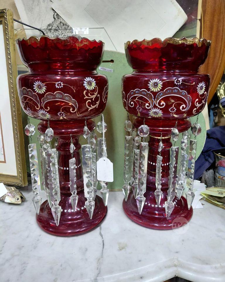 Pair large,36 cms long Double row crystals Ruby glass Girandoles ,lusters