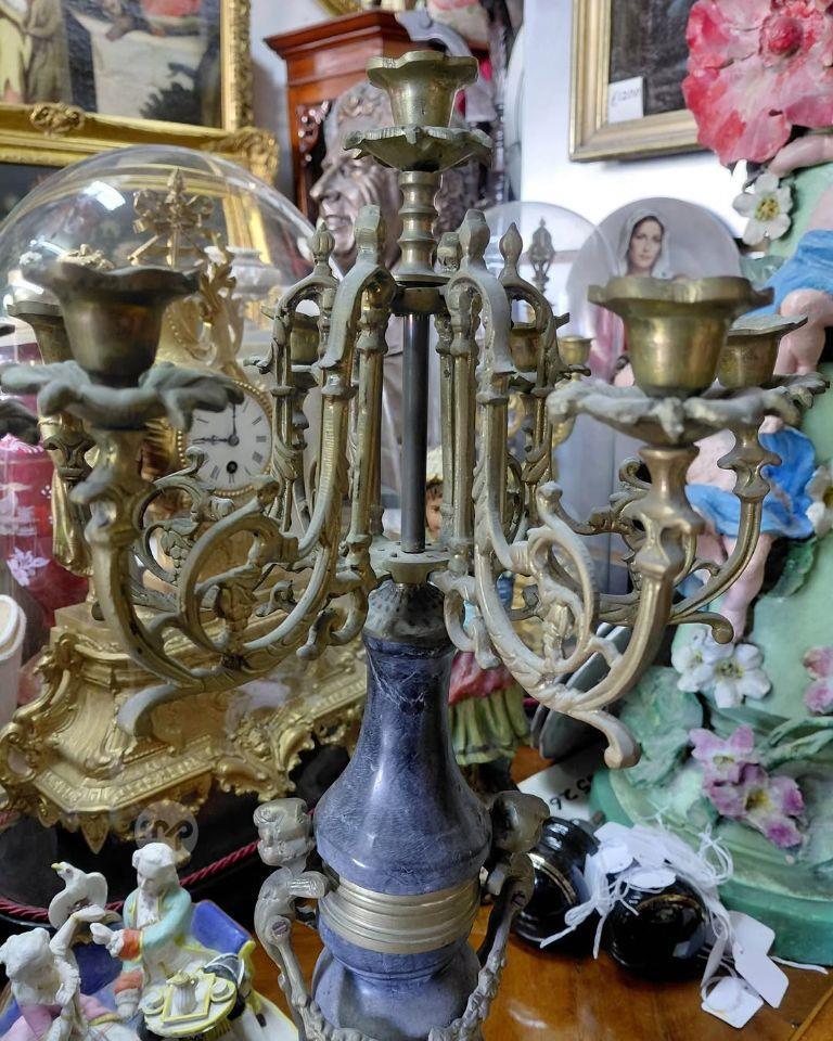 Pair large old and heavy Bronze and marble Candelabras/candle holders
